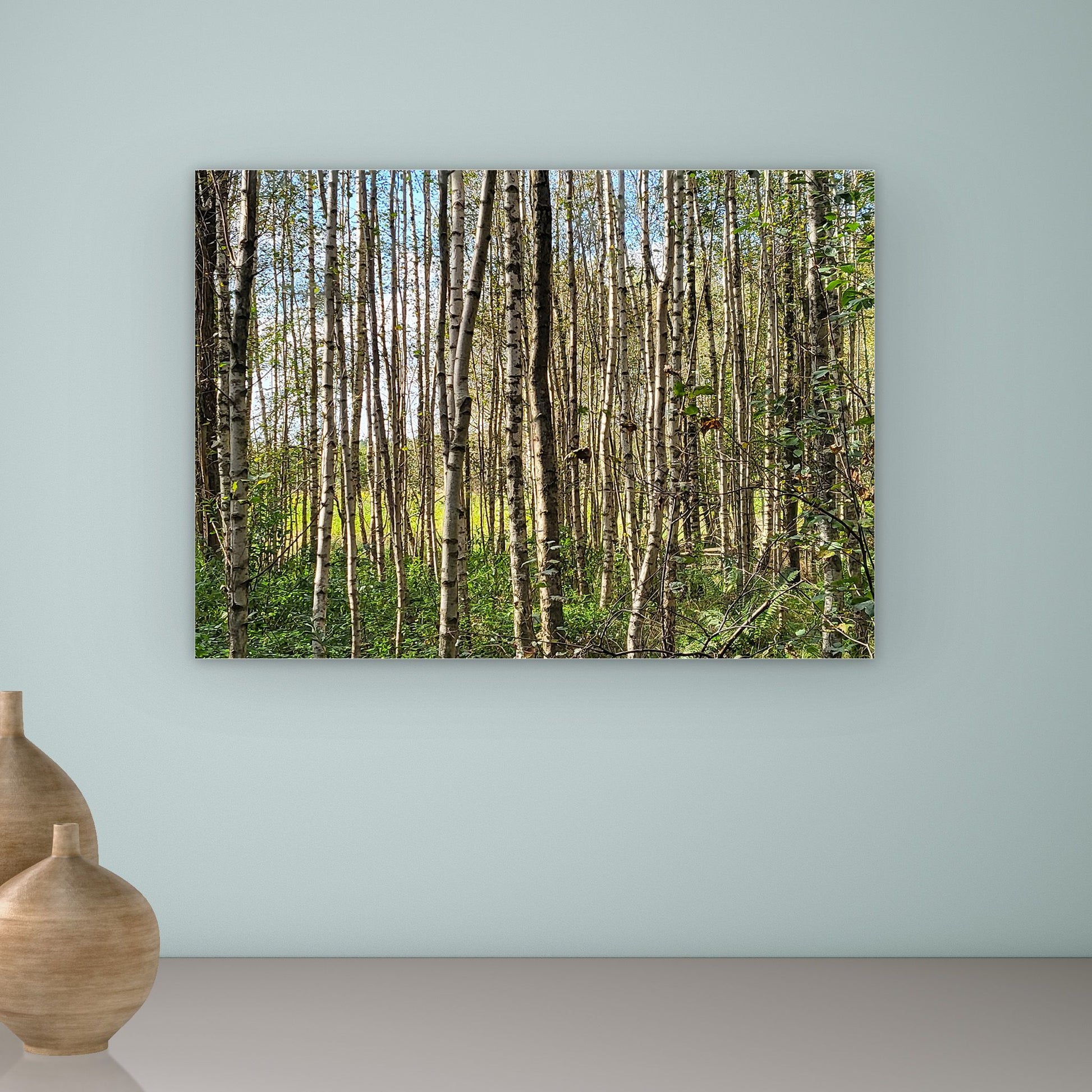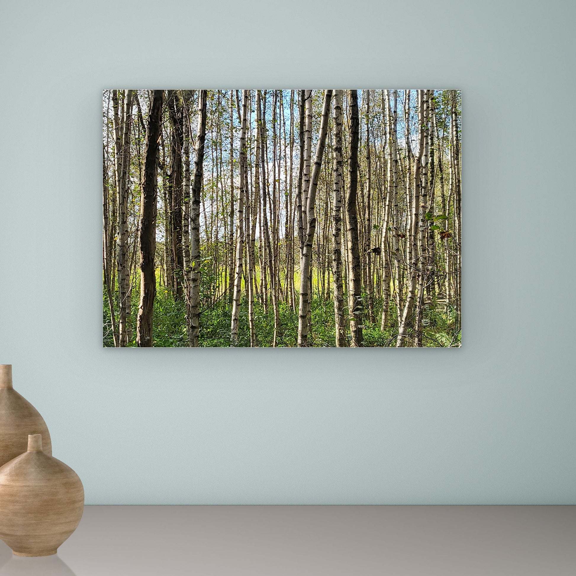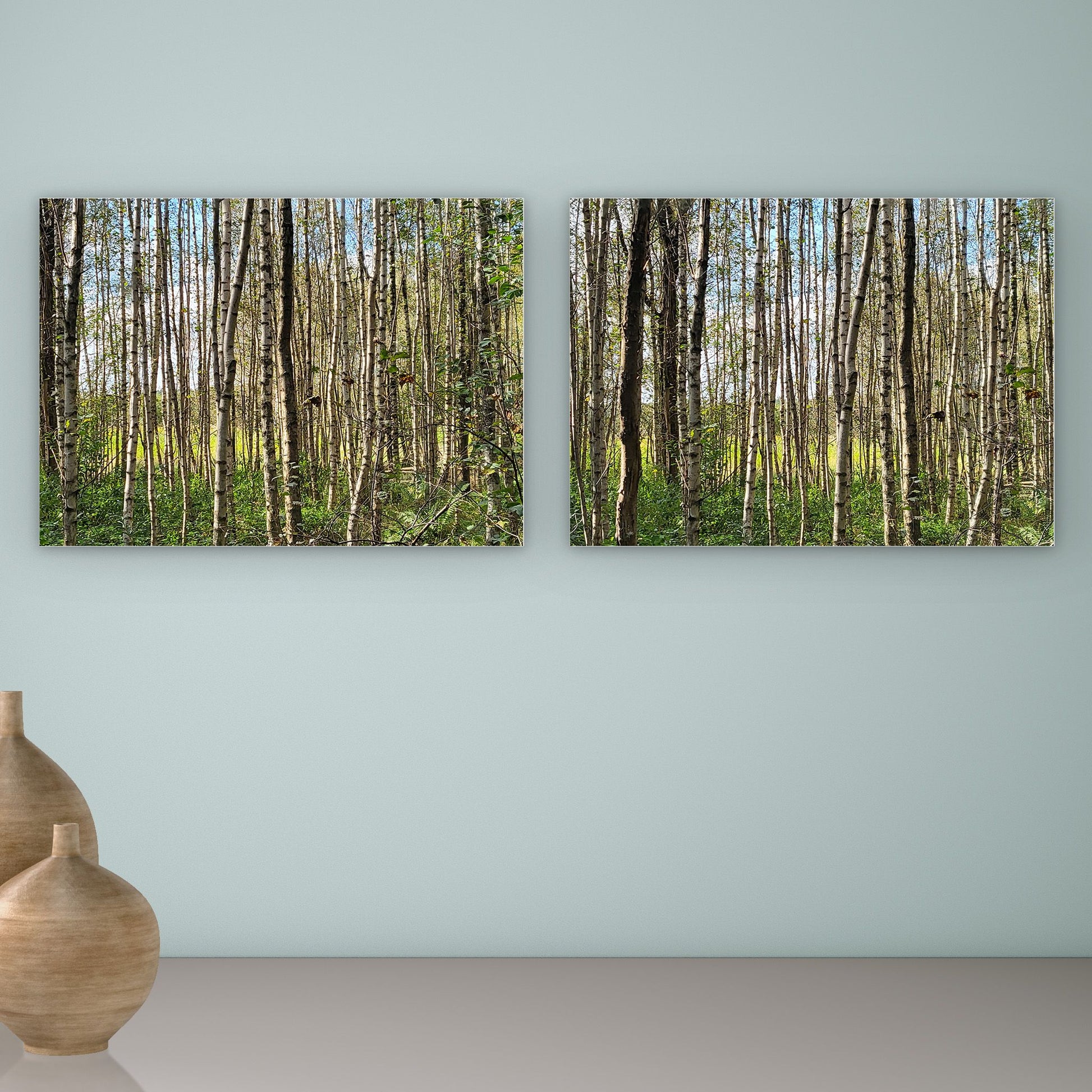 Set van twee aluminium panelen (36,4 × 51,5 cm) met natuurfoto’s van berkenstammen.