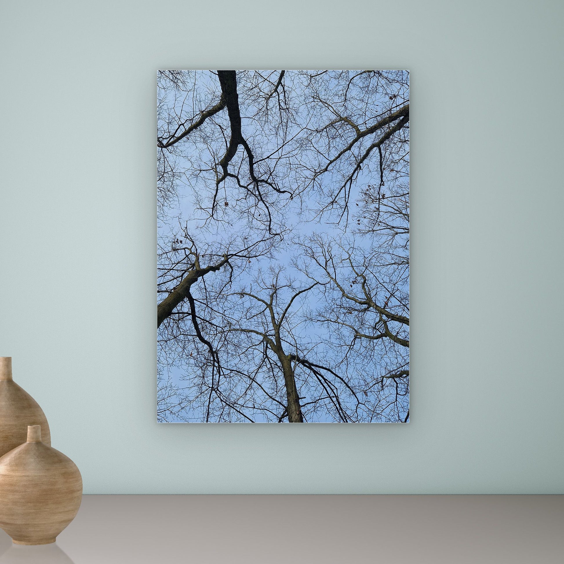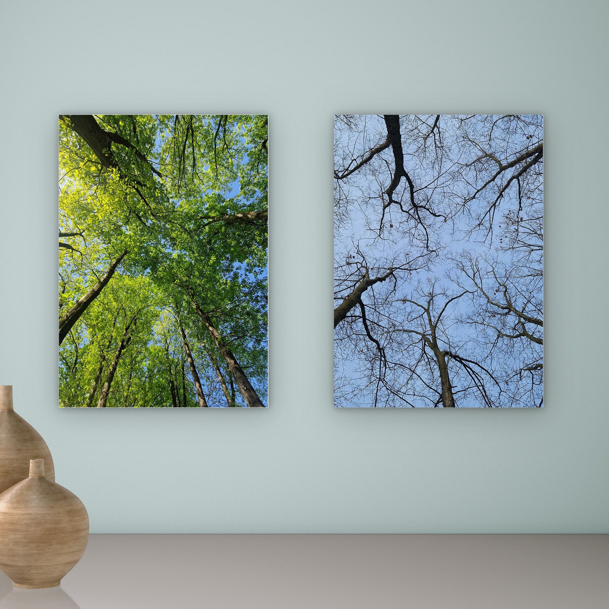 Set van twee aluminium panelen (36,4 × 51,5 cm) met natuurfoto’s van boomkruinen.