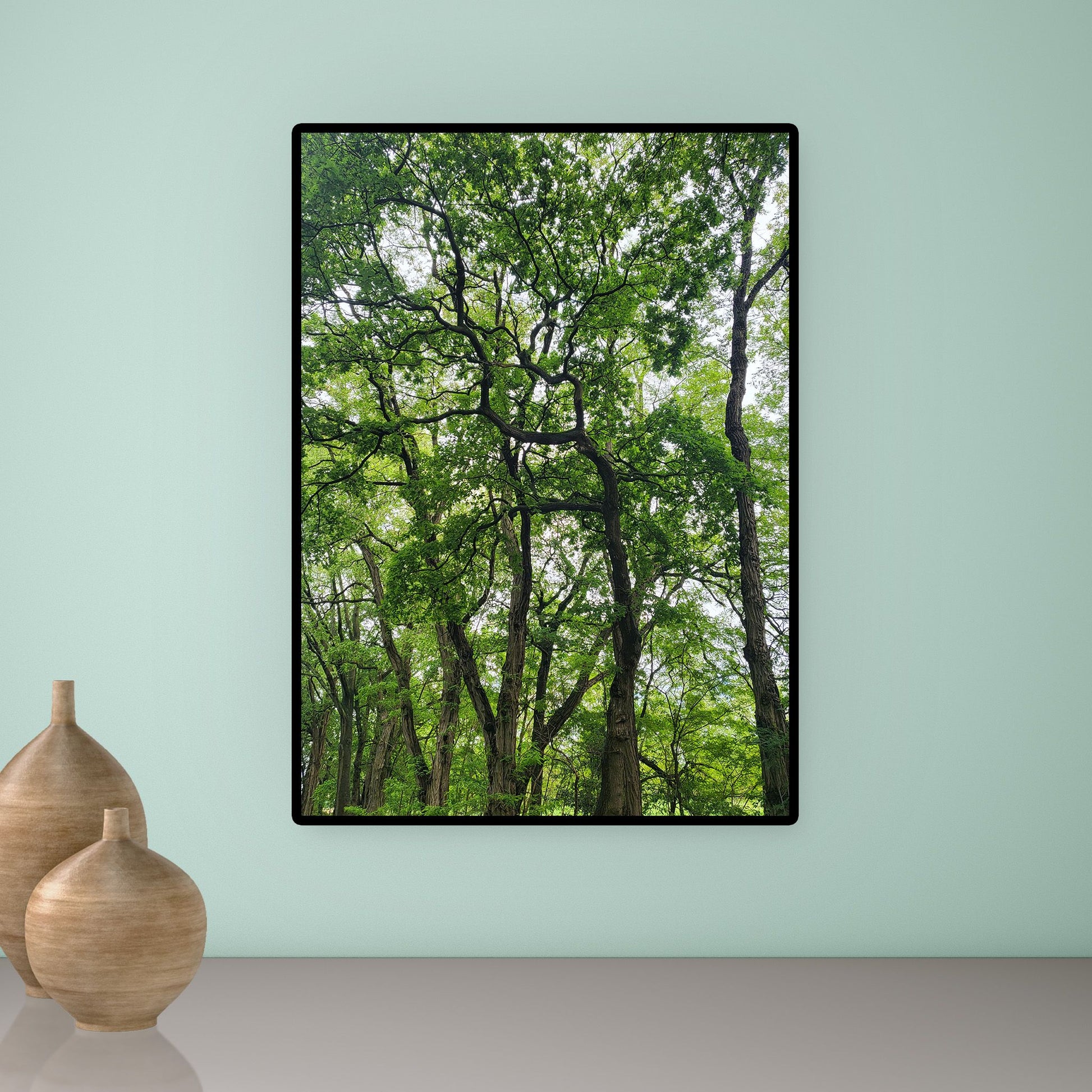 Natuurfoto van kronkelige acaciatakken in een zwart houten lijst. Formaat 50 x 70 cm. Gefotografeerd in Oudsbergen (BE)